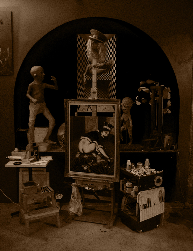 Mon œuvre est une panoplie de scénettes où j’étale mes interprétations fantasmagoriques. Un View Master en psychose. Je suis un charlatan fabulateur qui invente des lieux où l’on peut épier la misère et la beauté des choses qui m’inquiètent; la nature, les humains… et je vous regarde les regarder.