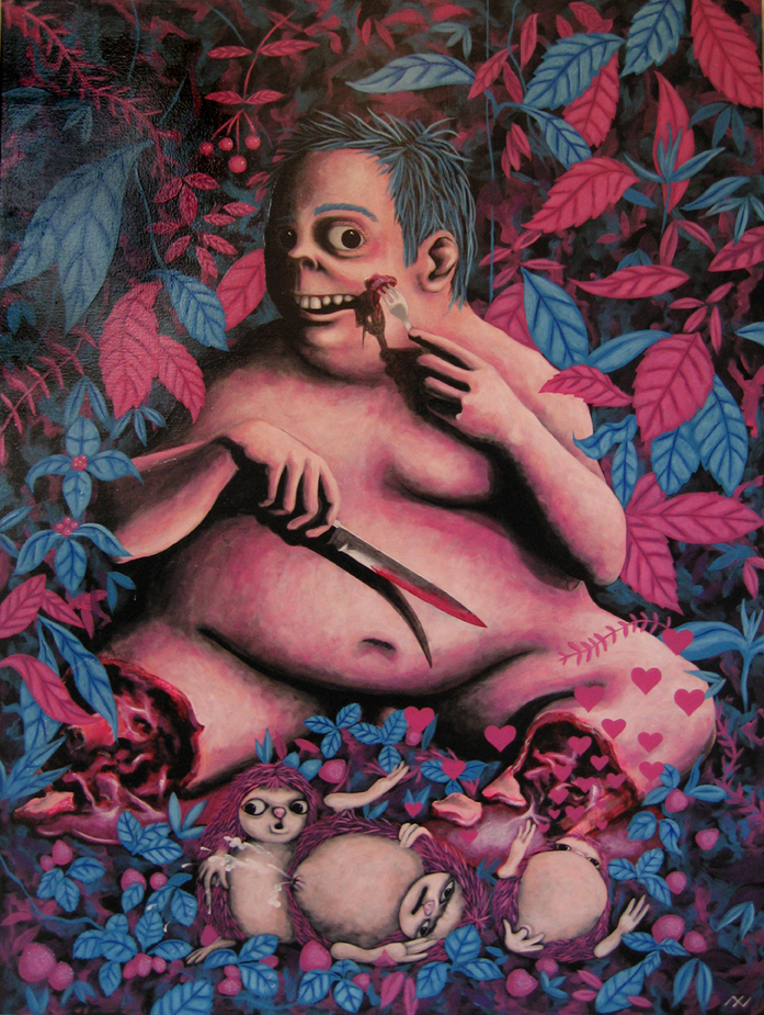 Hansël, Gretel und Jesu, acrylique sur toile 48” x 36” SOLD